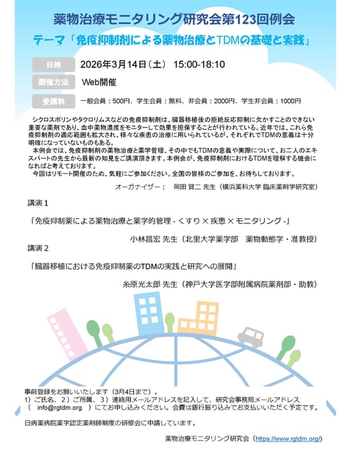 第71回薬物治療モニタリング研究会特別ゼミナール